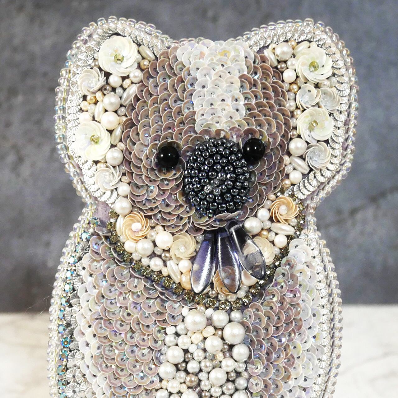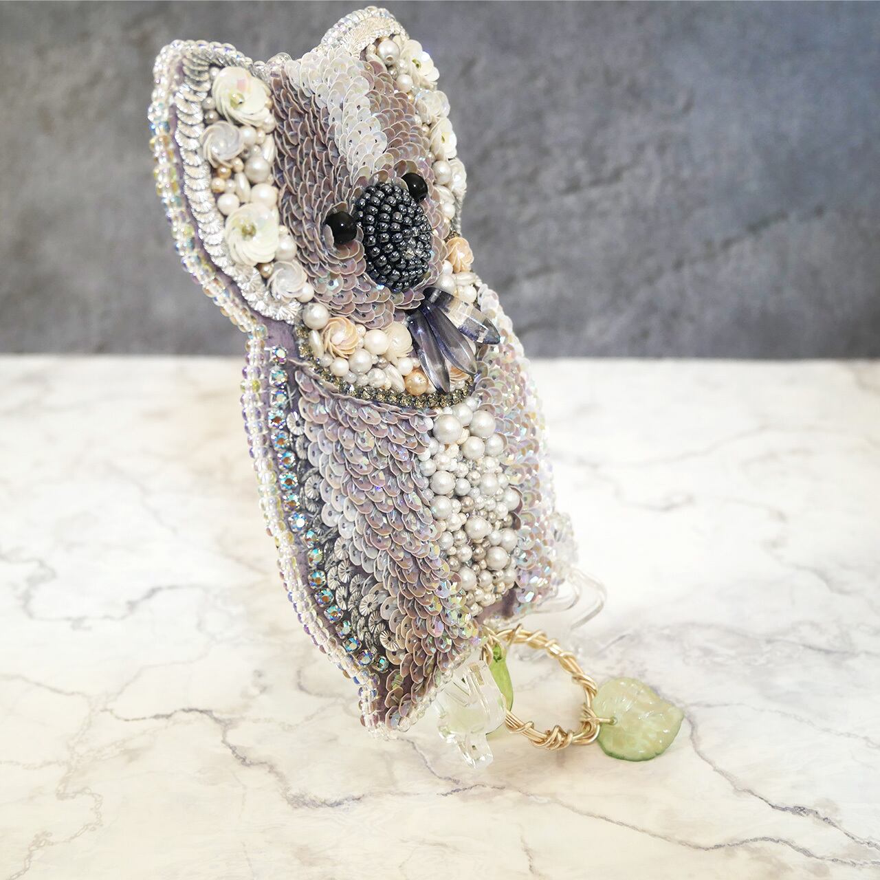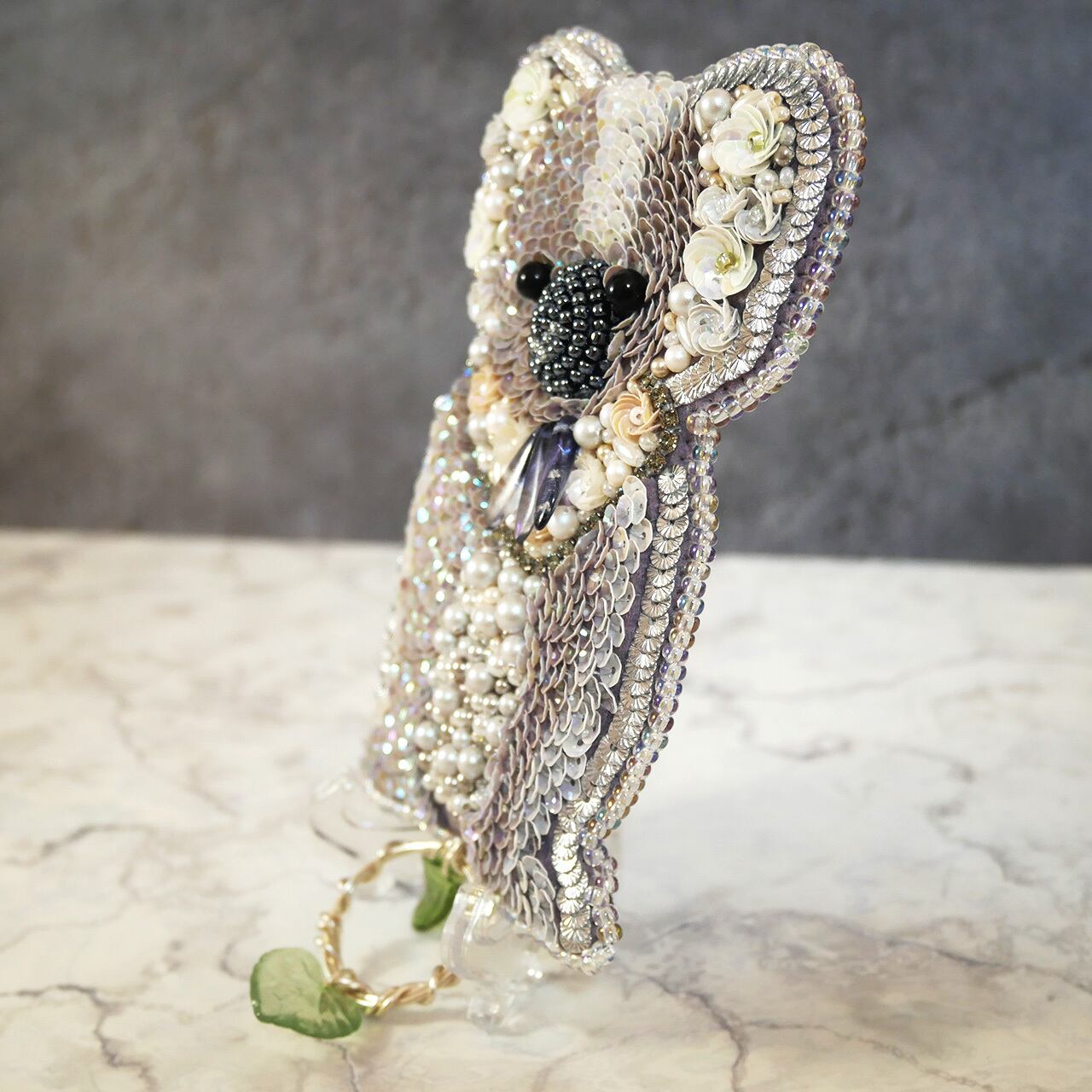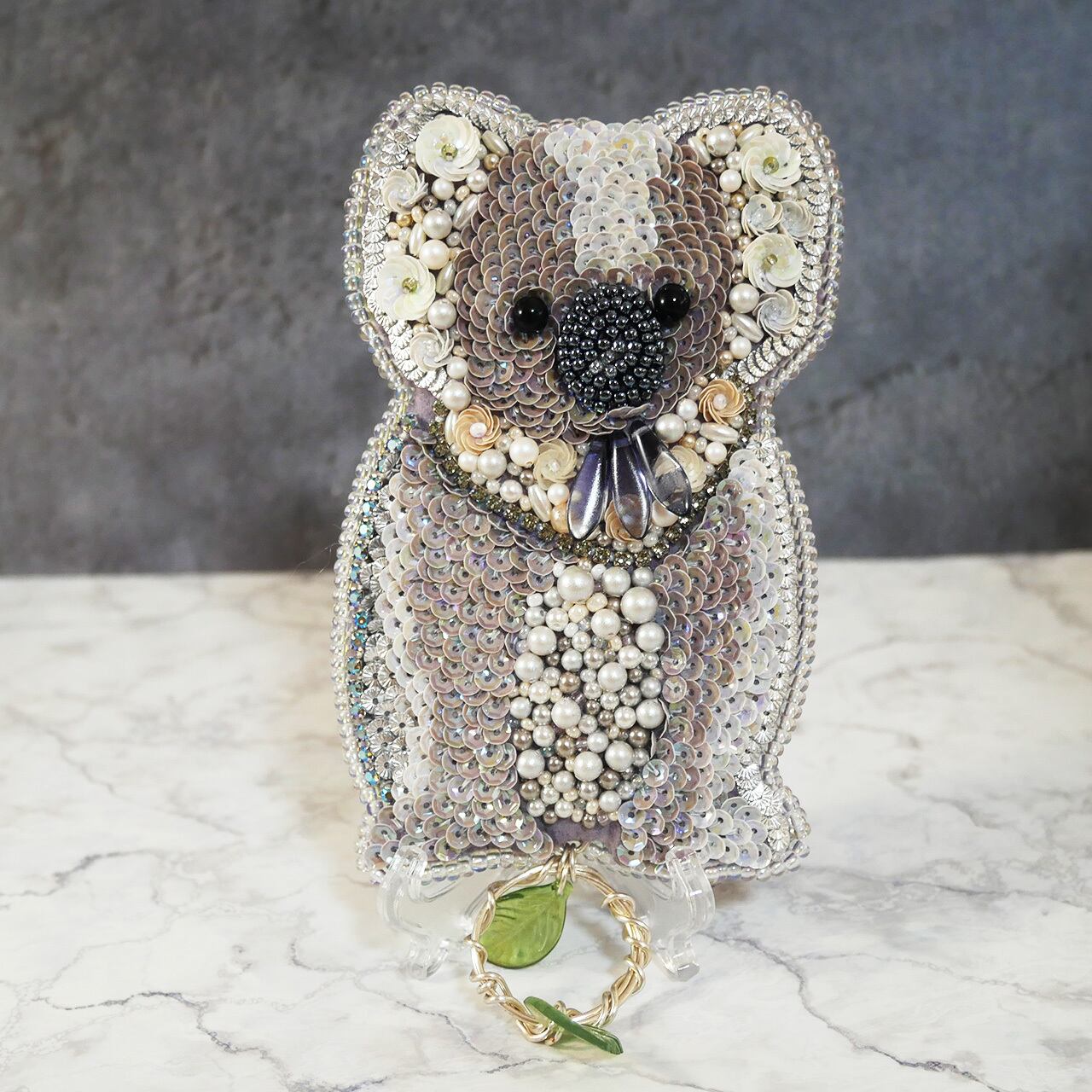 寝ている時間も多くあまりそれぞれの個性がないのでは??と思われるコアラですが、それぞれの個性を出すために、まず、フェルトを型紙に沿って形を作り、ビーズやスパンコールで毛の色からコアラらしさを出すために、刺繍デザインを施しました。