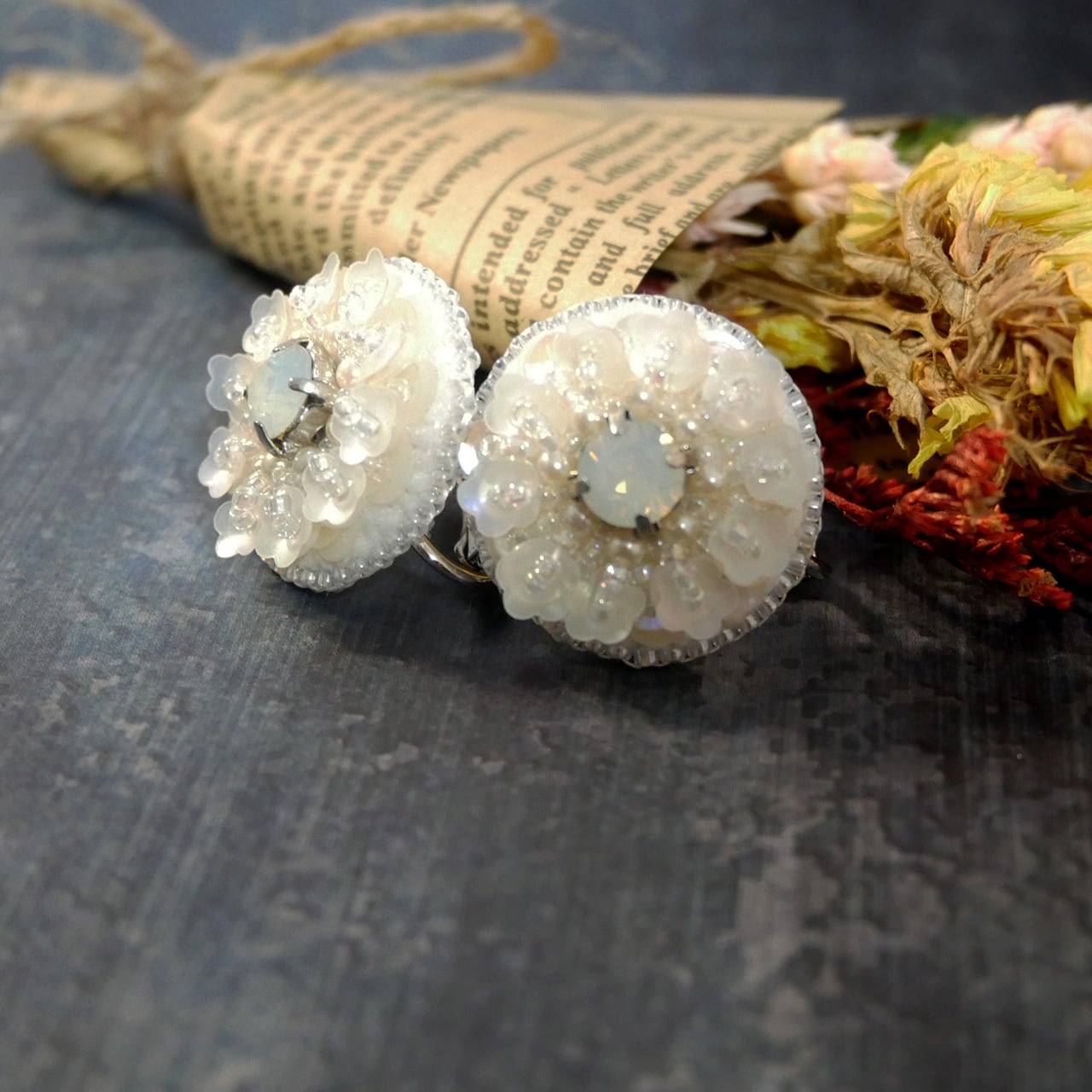 ✼••プリンセスフラワー イヤリング(ほわいと)••✼