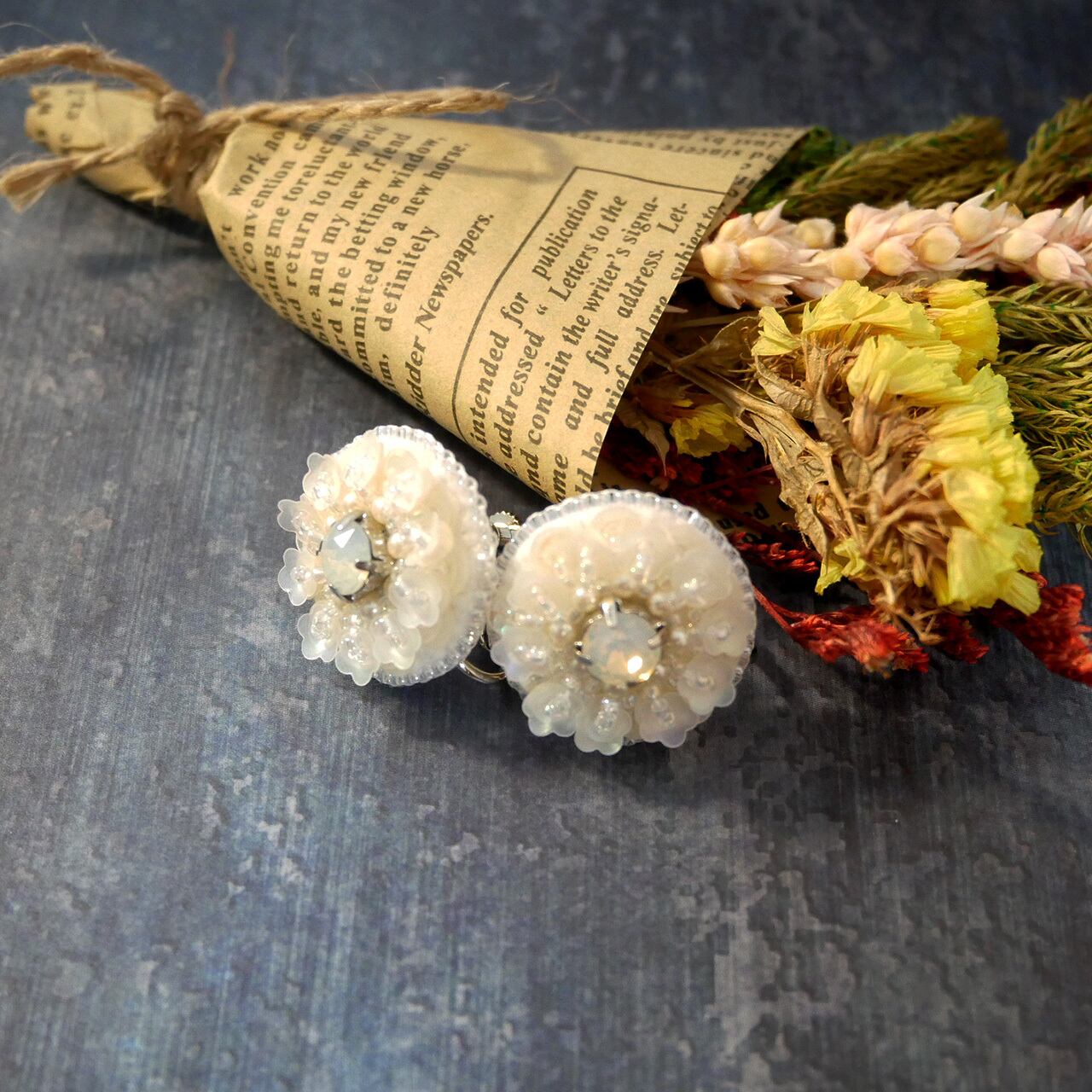 厳選した素材を使用し、一針ひとはり丁寧に、”おとなかわいい”イヤリングの仕上げております。